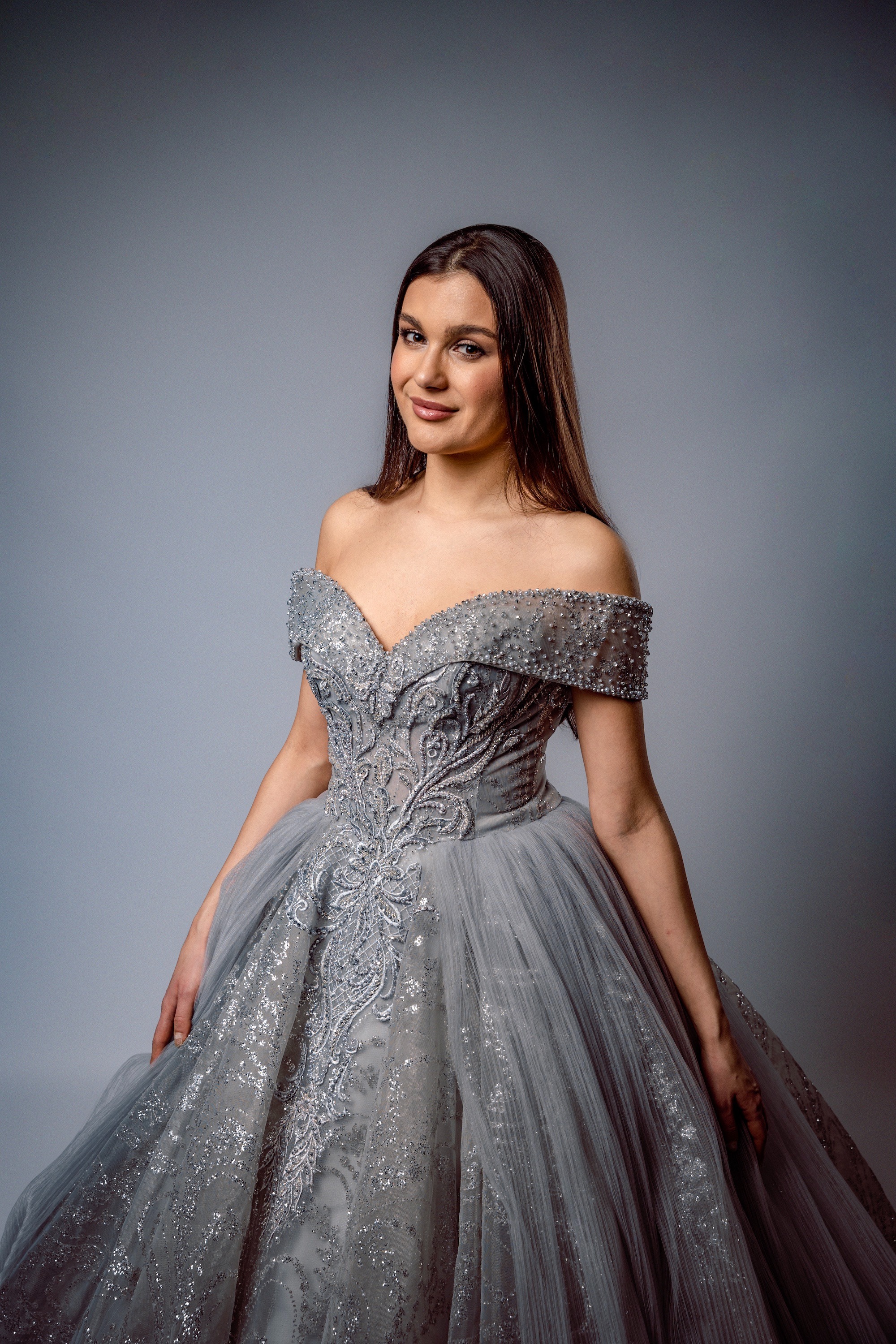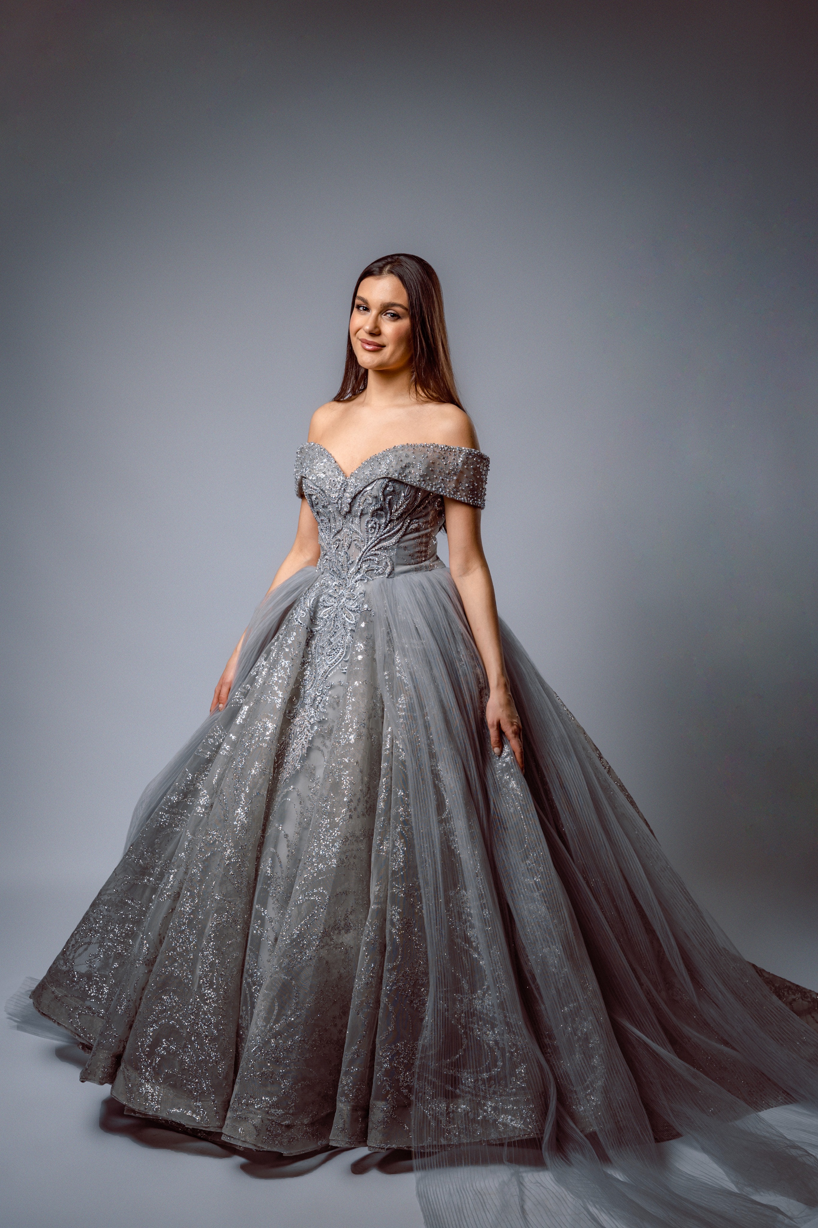 Luxusní stříbrné společenské šaty, vyšívané třpytivou krajkou. K půjčení ve velikosti 38 - 40. Úpravy v ceně půjčovného. Pokud si chcete šaty objednat, zamluvit, vyzkoušet v našem salonu, nebo se jen na něco zeptat, neváhejte nás telefonicky kontaktovat.